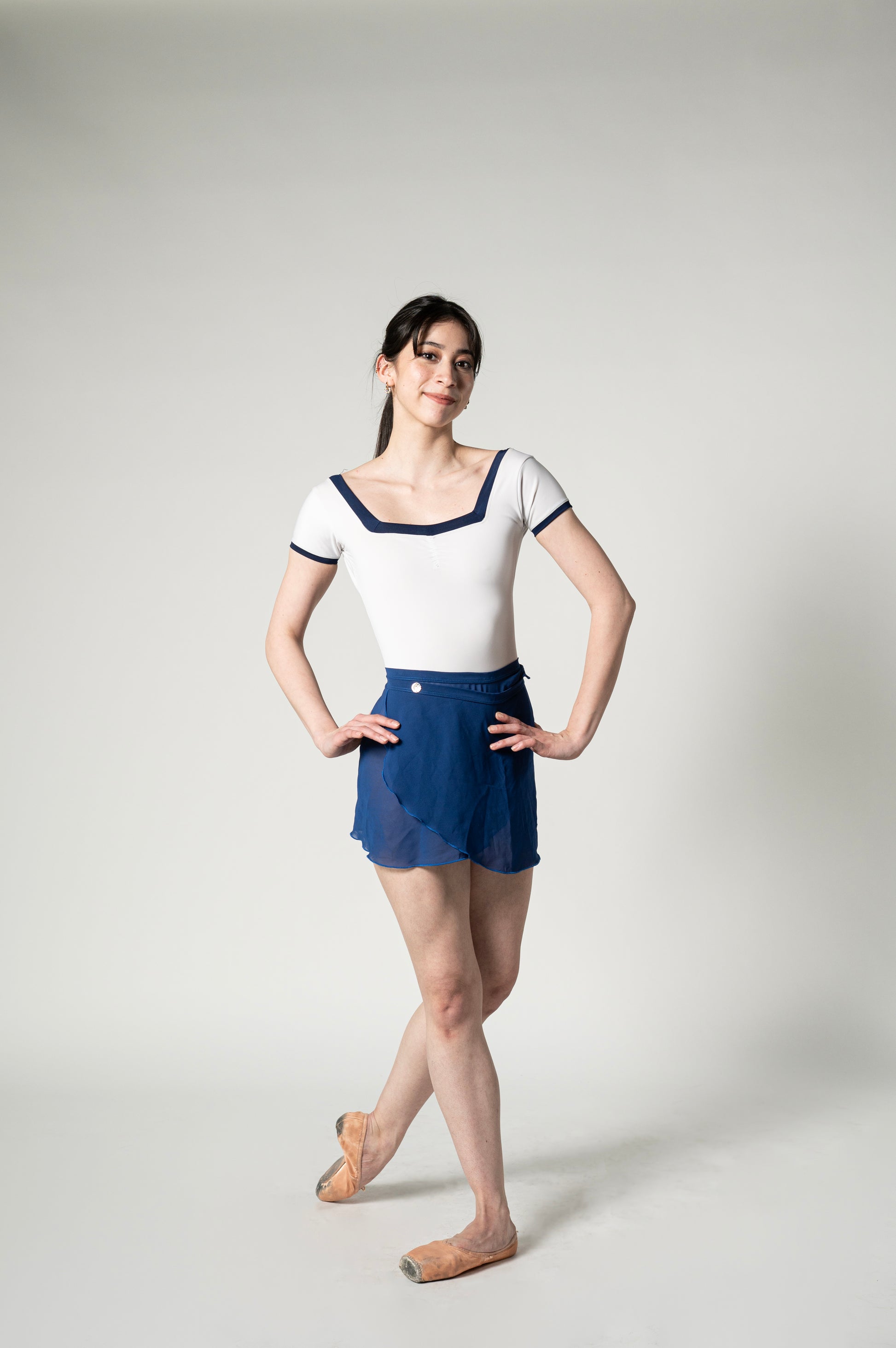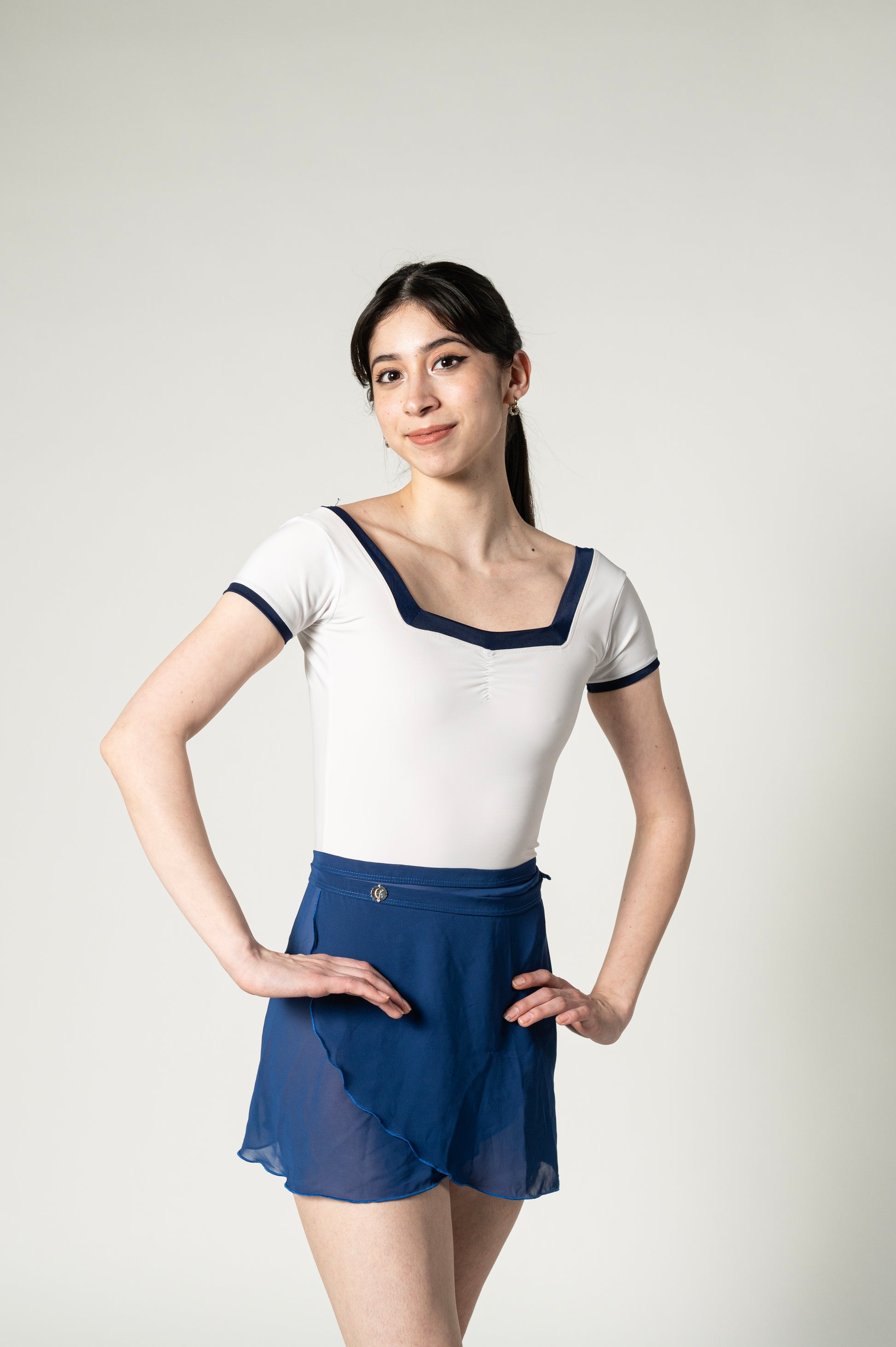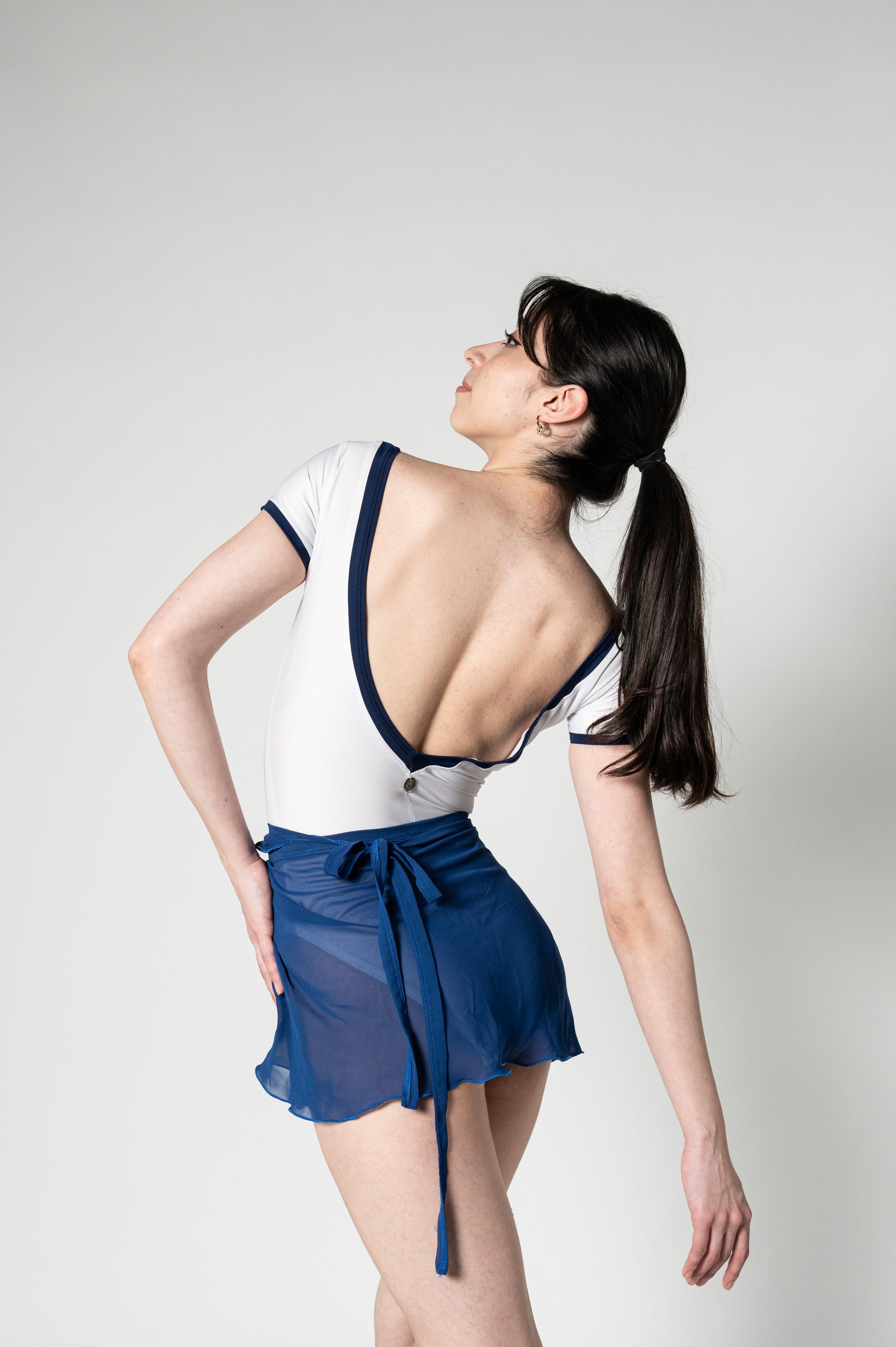 Leotardo de manga corta con espalda baja y borde delgado en otro color