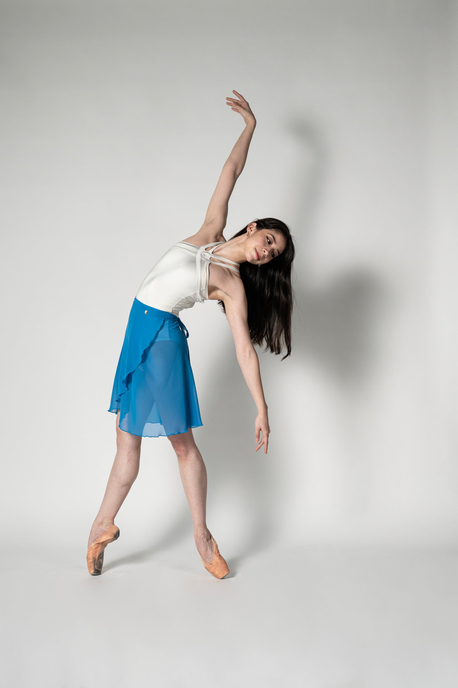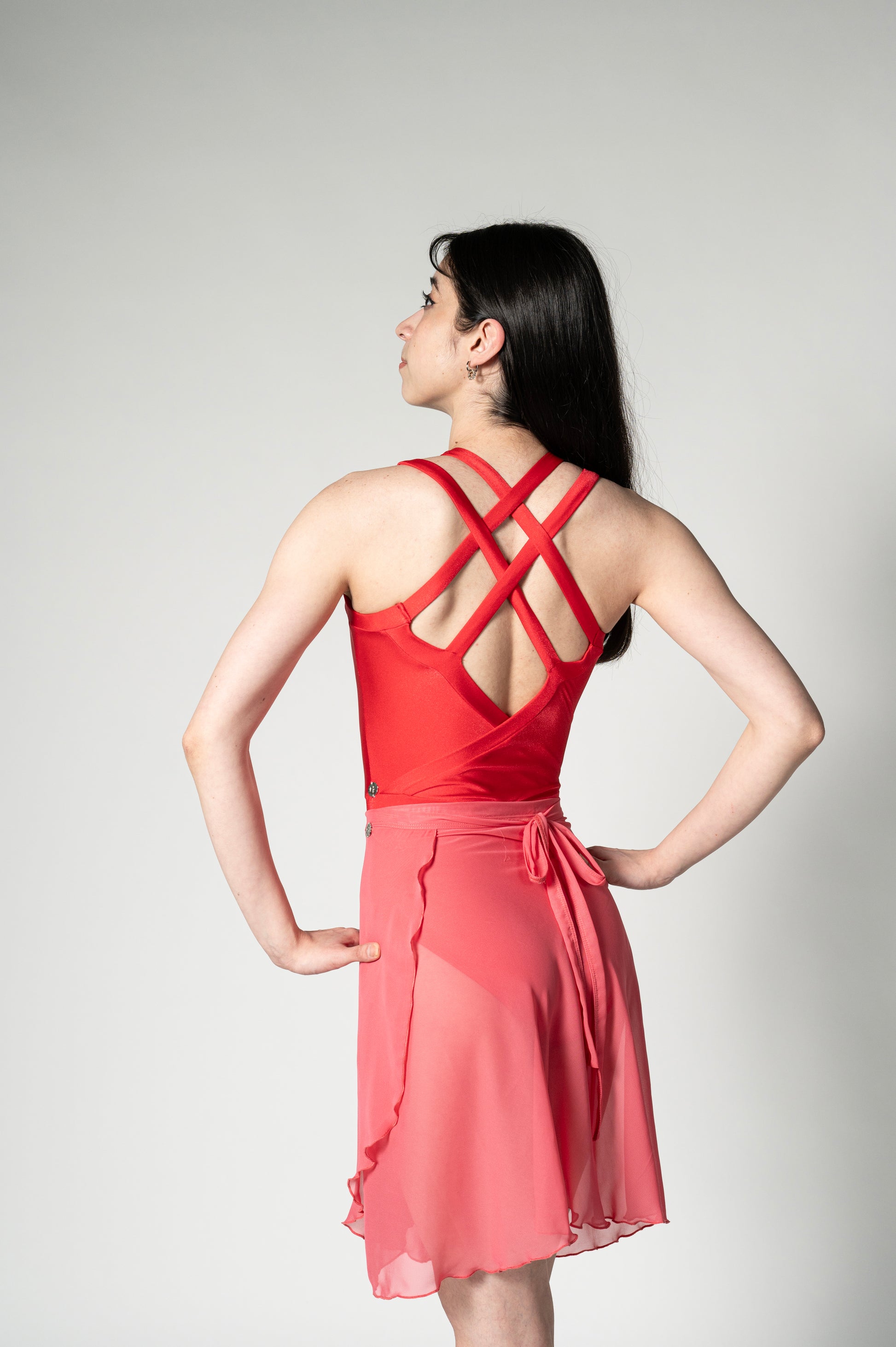 Leotardo de color liso con tirantes cruzados al frente y en la espalda.